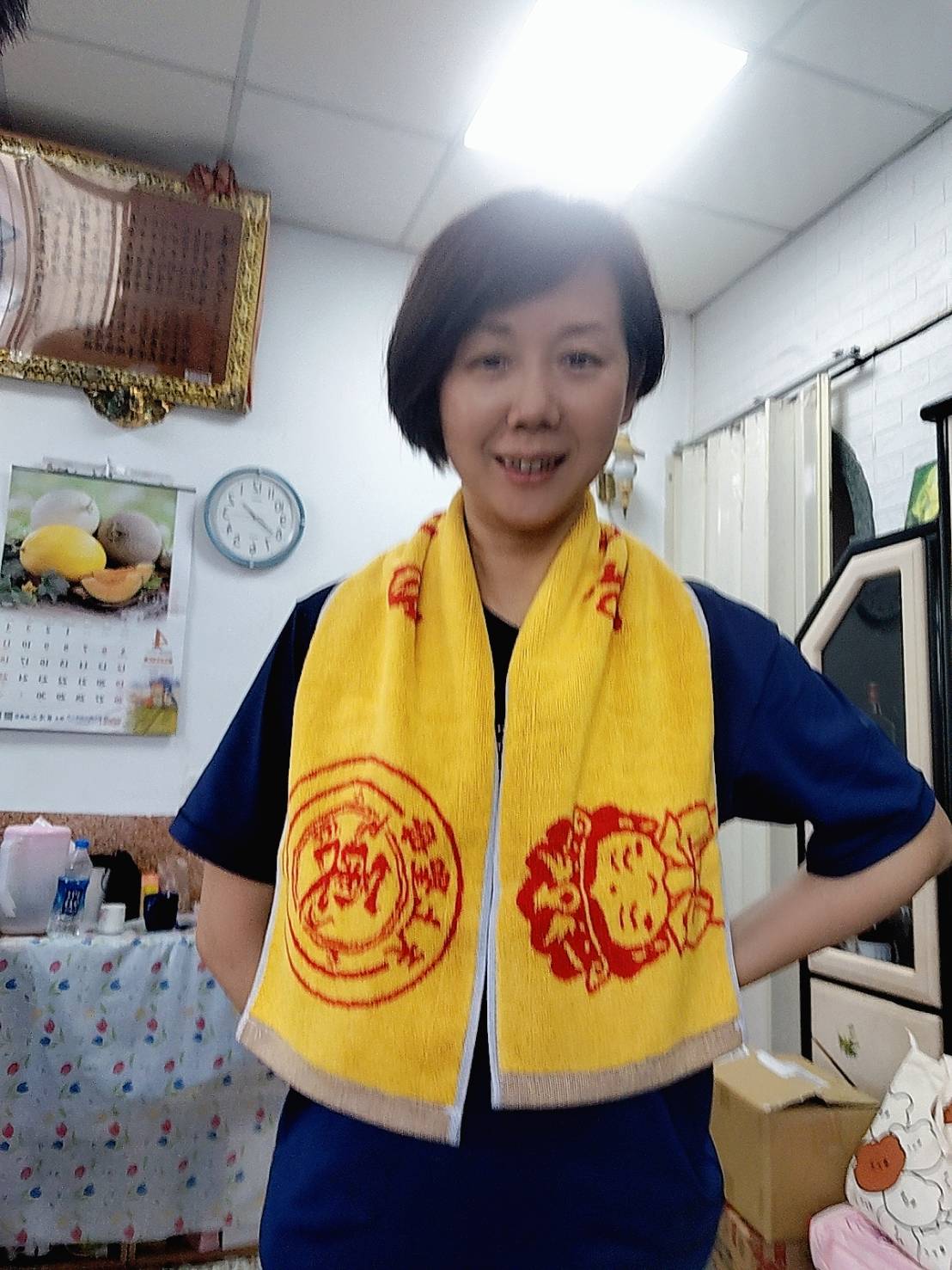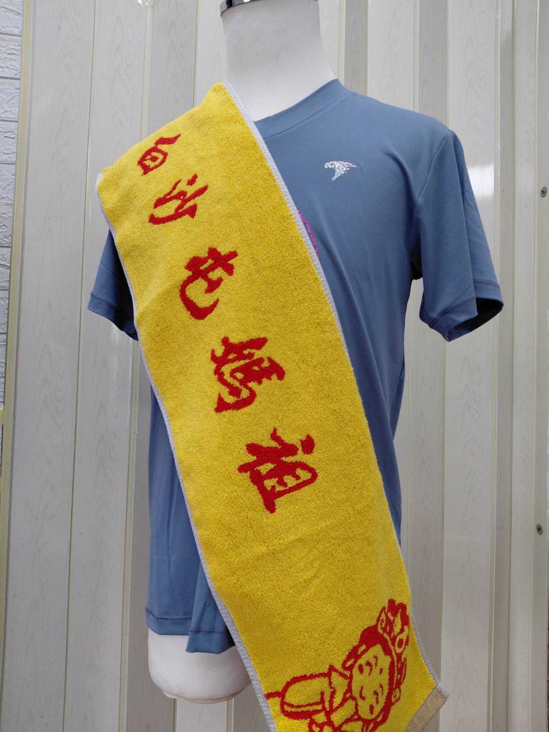 白沙屯媽祖石墨烯能量運動圍巾,紅色與黃色雙面緹花(天上聖母,白沙屯媽祖慈悲,無量是道)