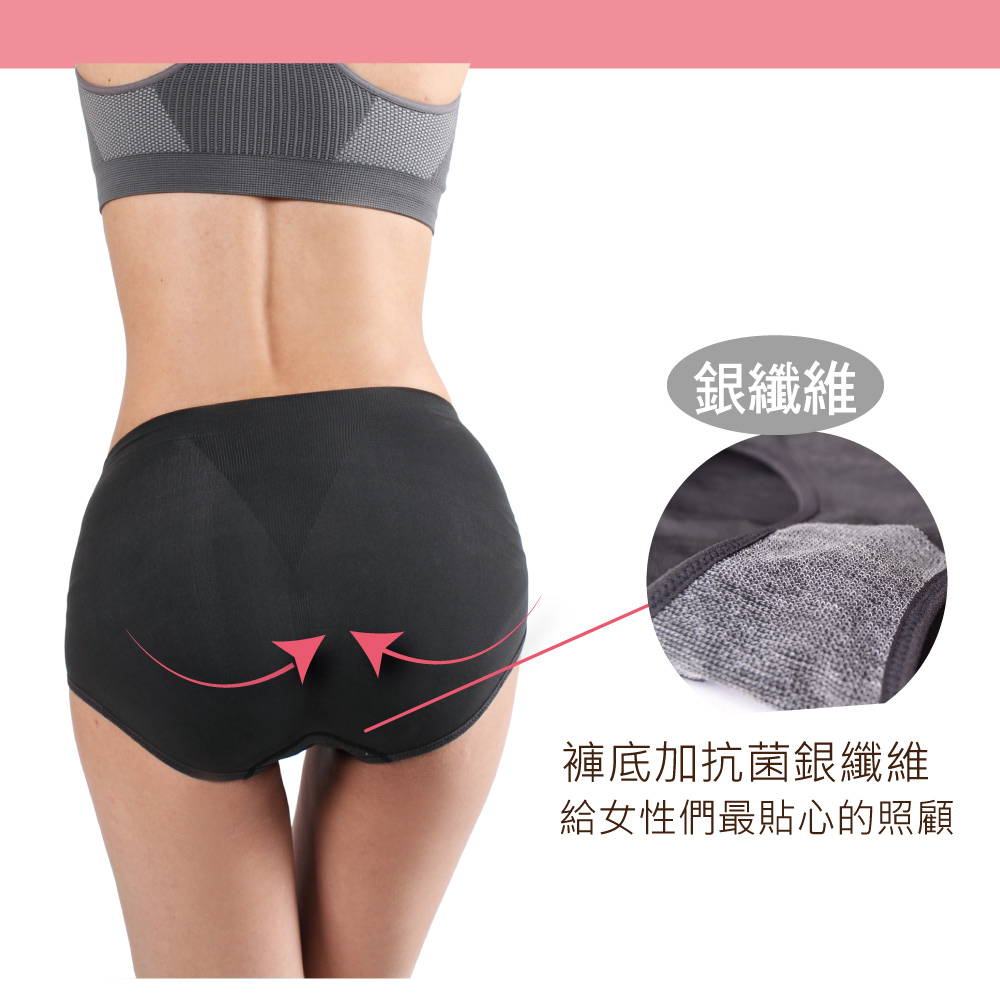 能量銀纖維女內褲(6件組) 暖宮內褲 無縫竹炭內褲,超細纖維無痕竹炭褲