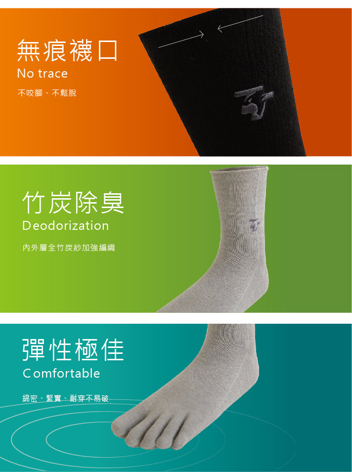 1.整雙採用最好的天然竹炭嫘縈棉,除臭吸汗效果最佳,